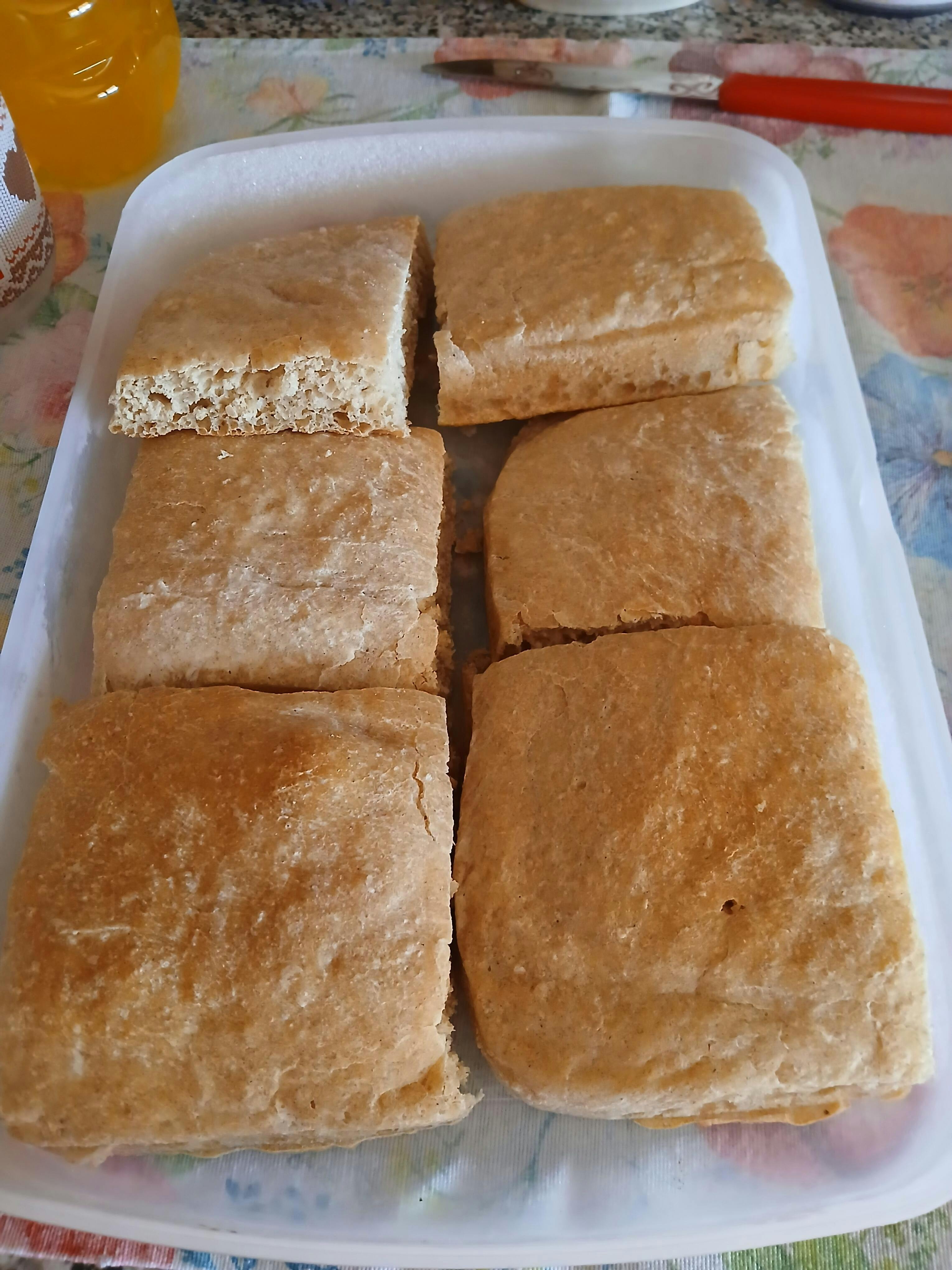 Miscela di farina molto azzeccata,devo capire un po' bene la lievitazione,mi sa che ho avuto fretta...Rimasta bassa ma buonissima